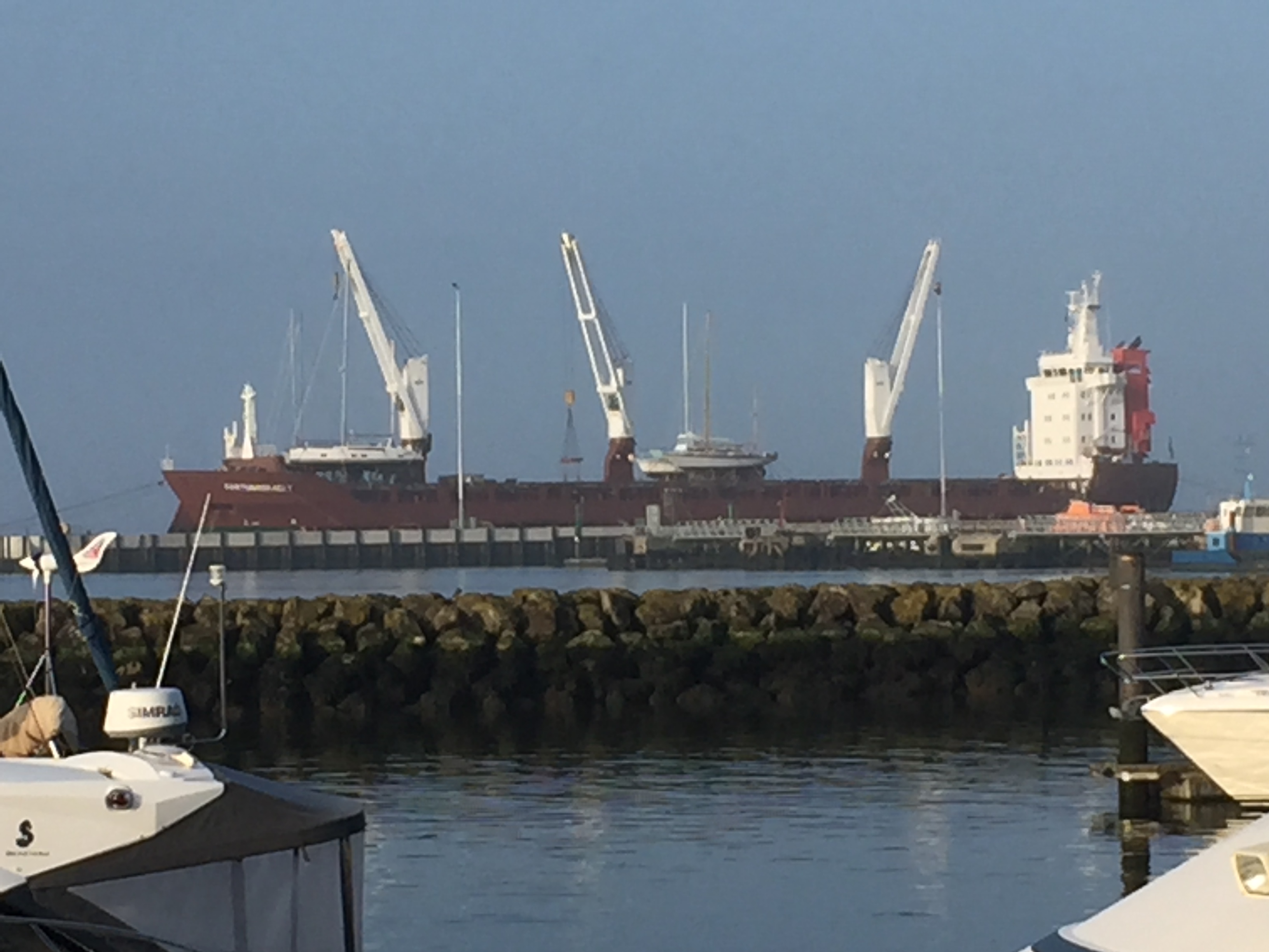 Went up on deck …. pitch black dark and dazzling port lights… but no wind, Poli Poli surprisingly still, no fender squeaks or slapping on the stern. Away to the east… the first tiny streaks of dawn. Final day… 60 nautical miles or so to home.