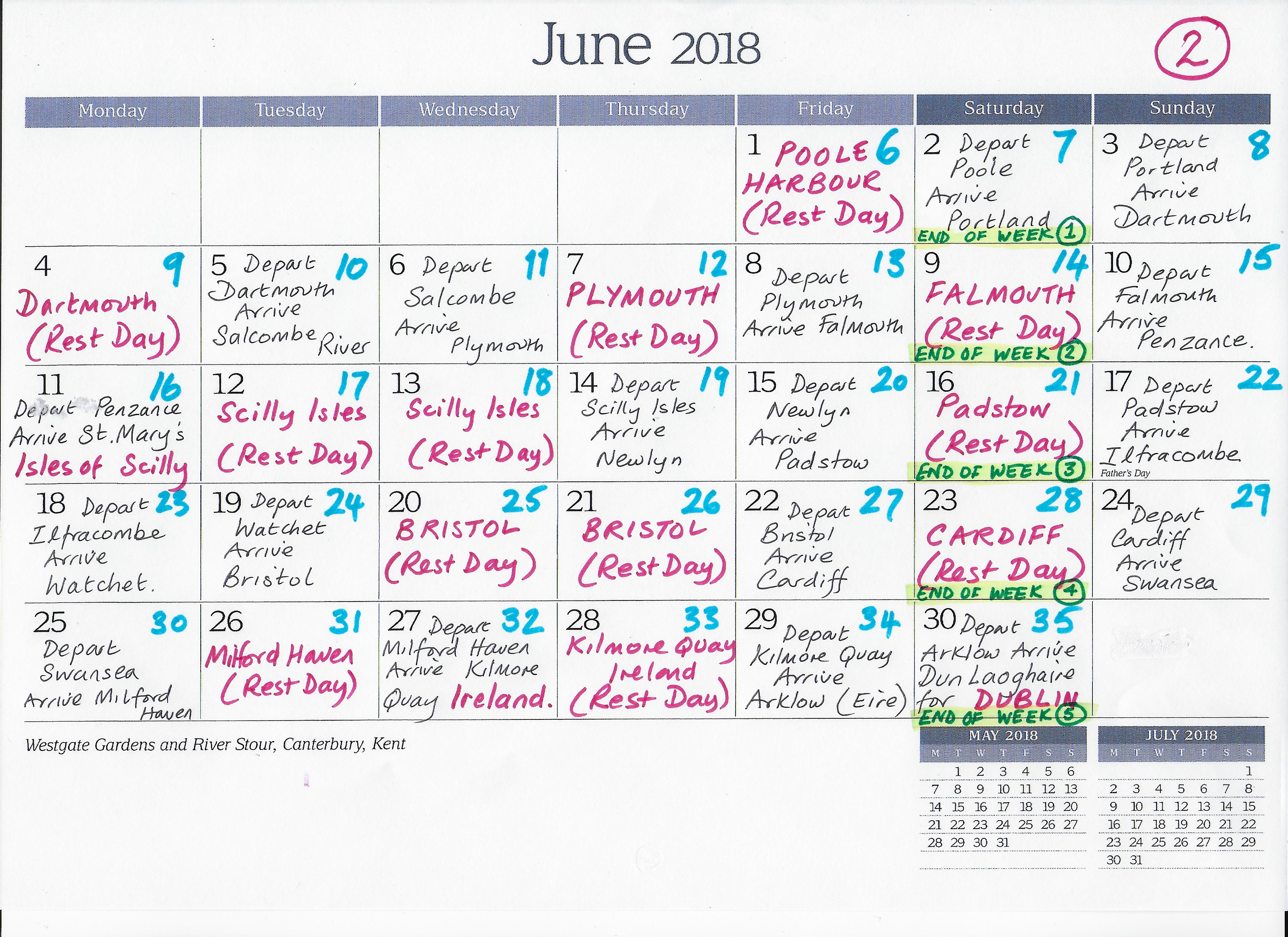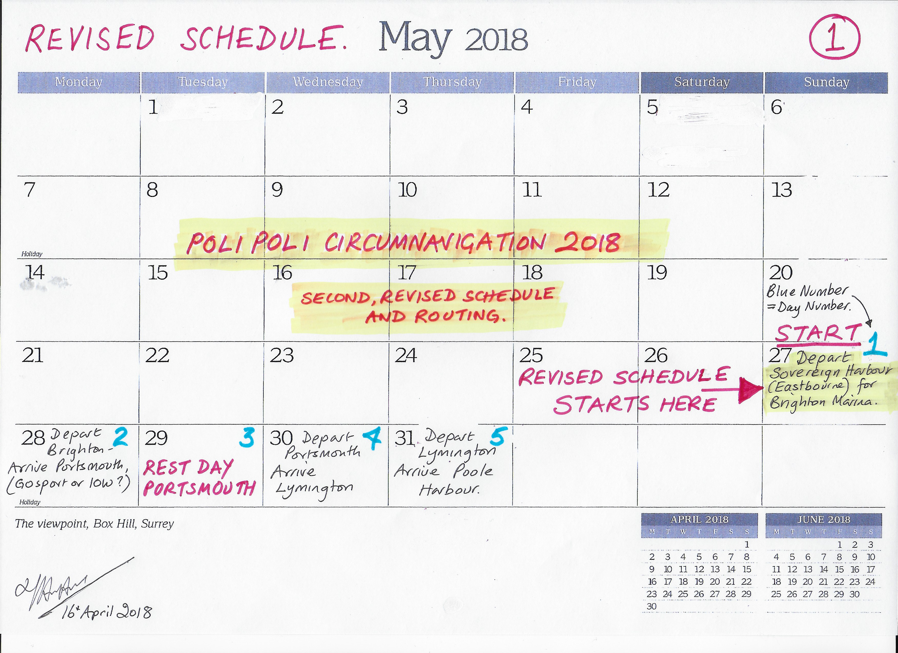 Photo below of the original map showing a summary of the Circumnavigation route with dates. As you can see …only two days late!!