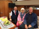 A small but happy, cheering band of followers…. friends and family of both Mike and myself stood above the welcoming lock gates of Sovereign Harbour… waving a banner and holding up shiny balloons. I had ordered the Red Arrows and the Battle of Britain Memorial flight plus two lifeboats with fire hydrants and a water arch to pass under…. but the little cheering gathering on lockside was just as good. We were home after 142 days at sea.